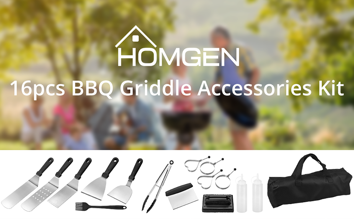 HOMGEN Popular 16pcs BBQ Griddle Accessories Cooking Kit